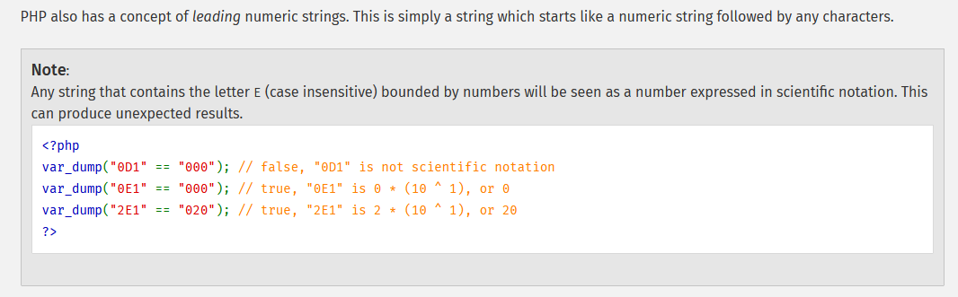 Thats another lead; if we can generate a token that starts with 0e or 0E followed by numbers, then when that token is checked against the input 0 will result in a valid token response.